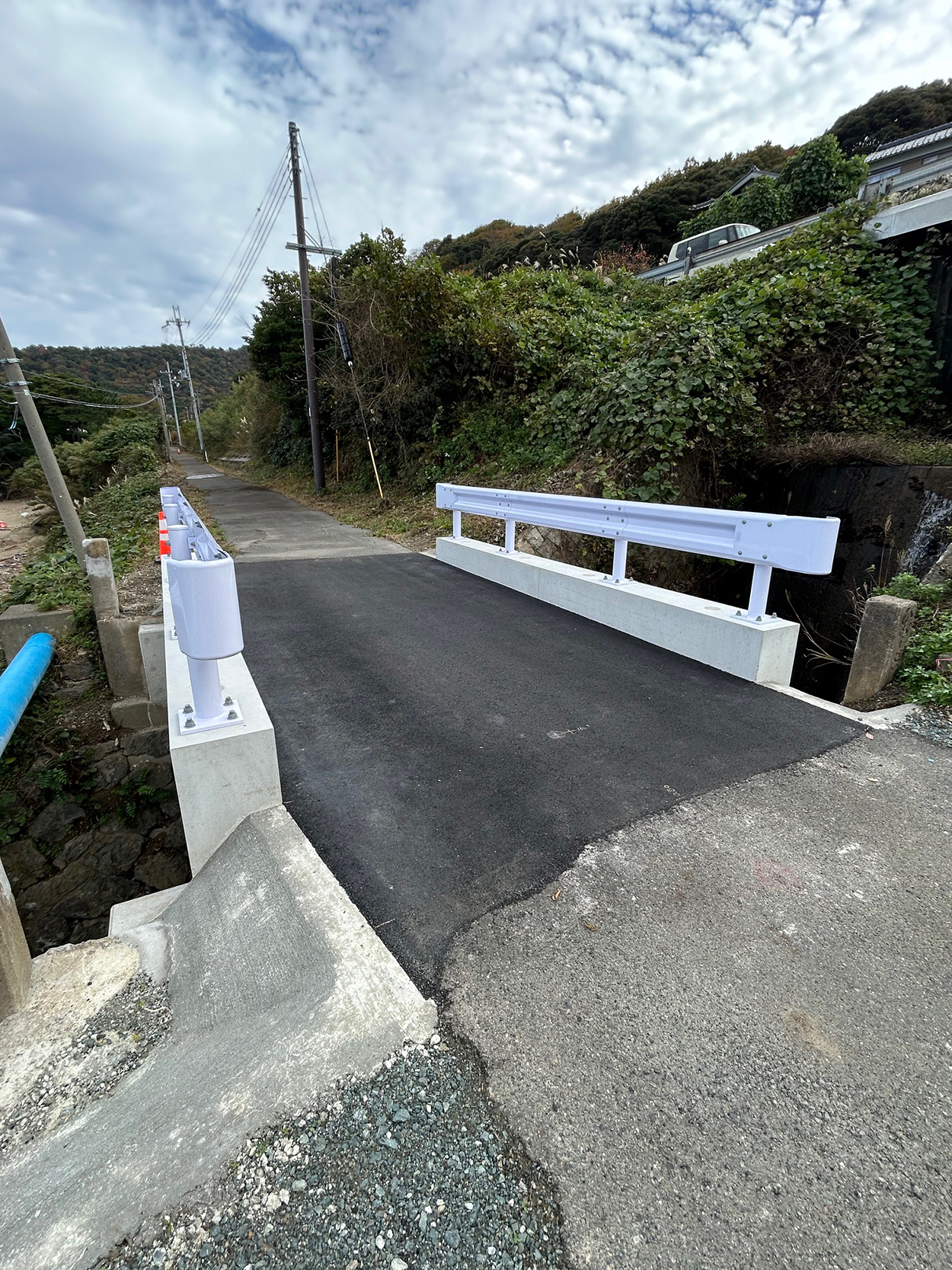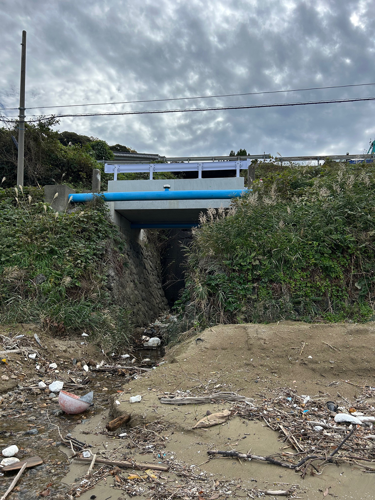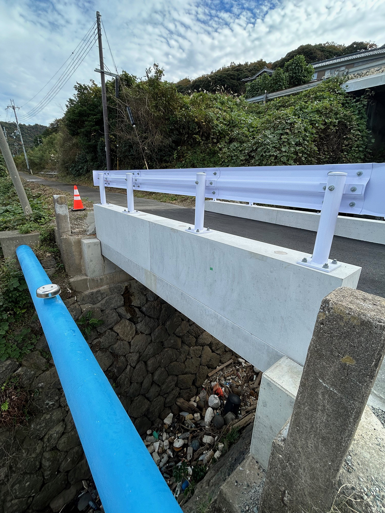 現況の橋桁が塩害で劣化が激しく修繕が必要のため、計画段階から床版と地覆をプレキャスト製品にて採用されました。